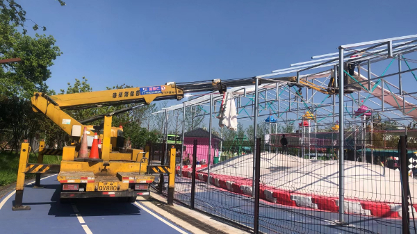 22米直臂升降車地鐵輕軌站施工現(xiàn)場…